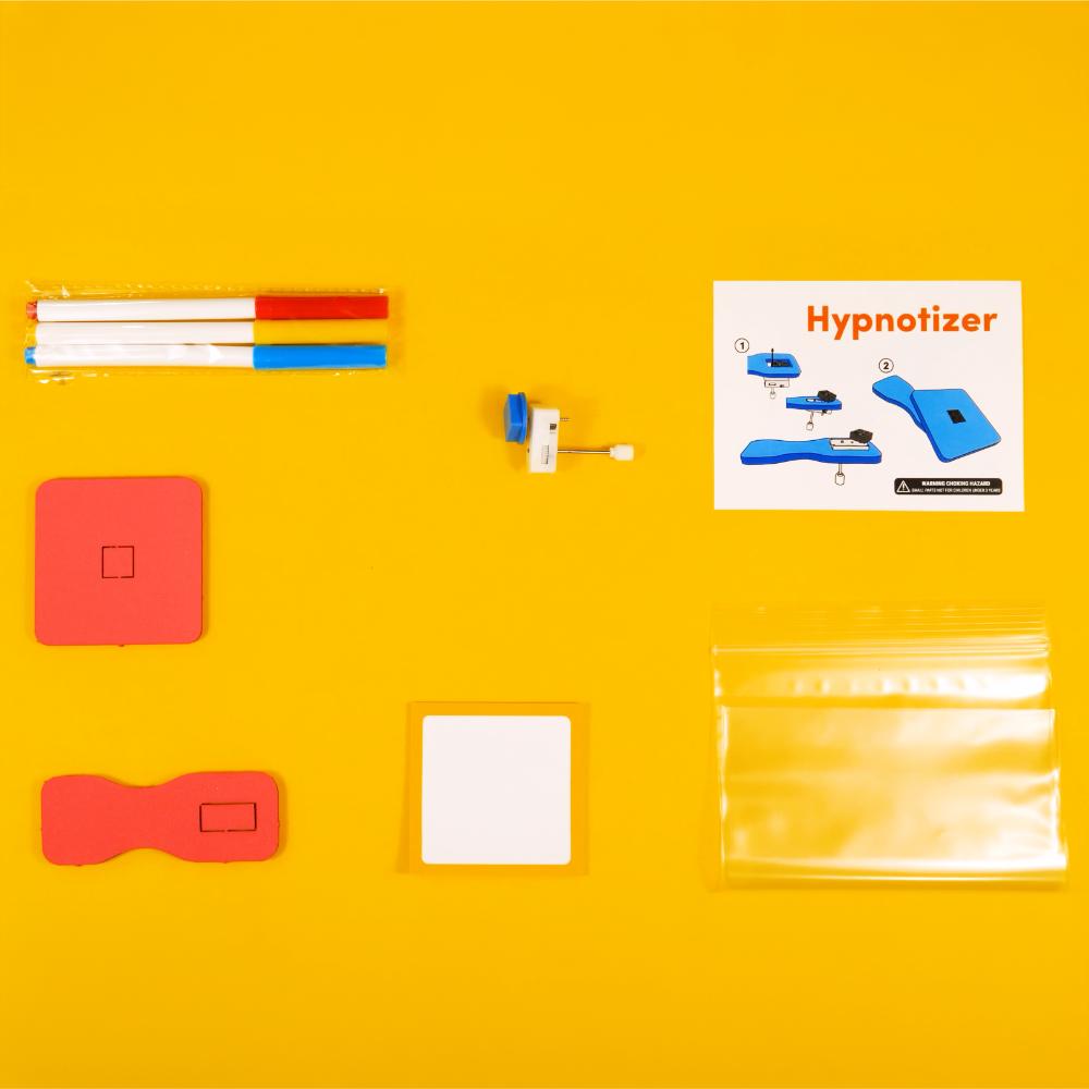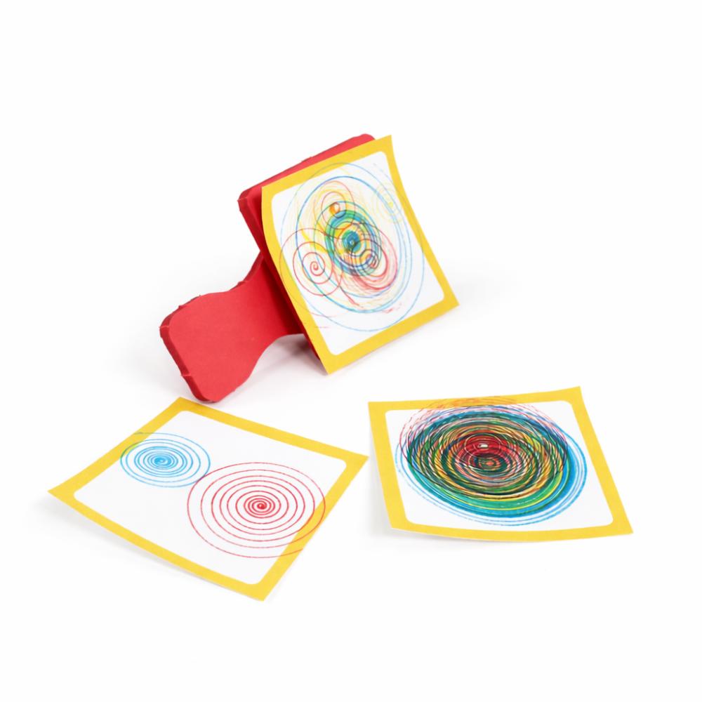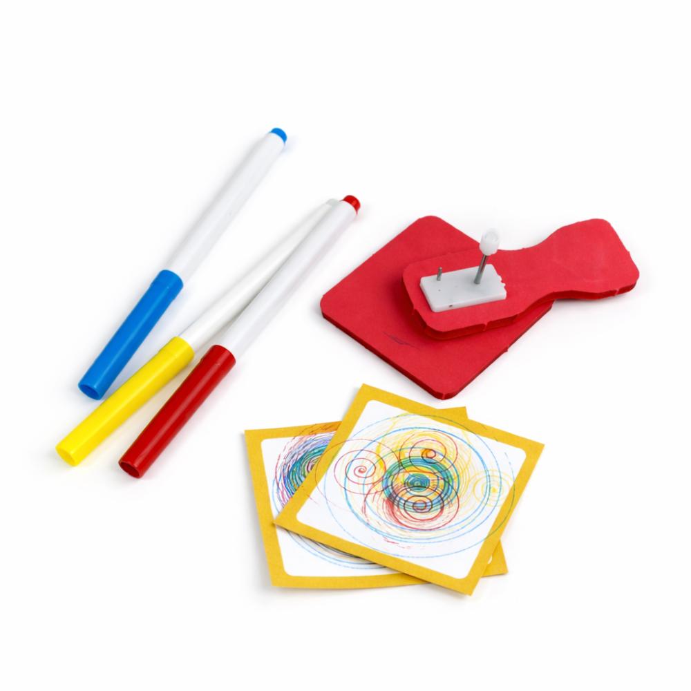 Draw colorful spirals with a spring-driven machine! Includes everything you need to quickly create hypnotic drawings - wind-up mechanism, foam holder and platform, three markers and adhesive notes. Cultivate curiosity and focus with simple machines that can generate different designs every time.
